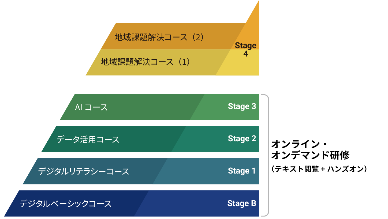 - StageBから順番に受講することをお勧めしていますが、受講者の知識や目的に合ったコースを選択して受講することができます(例: StageB、Stage1を飛ばしてStage2の受講も可能です)。