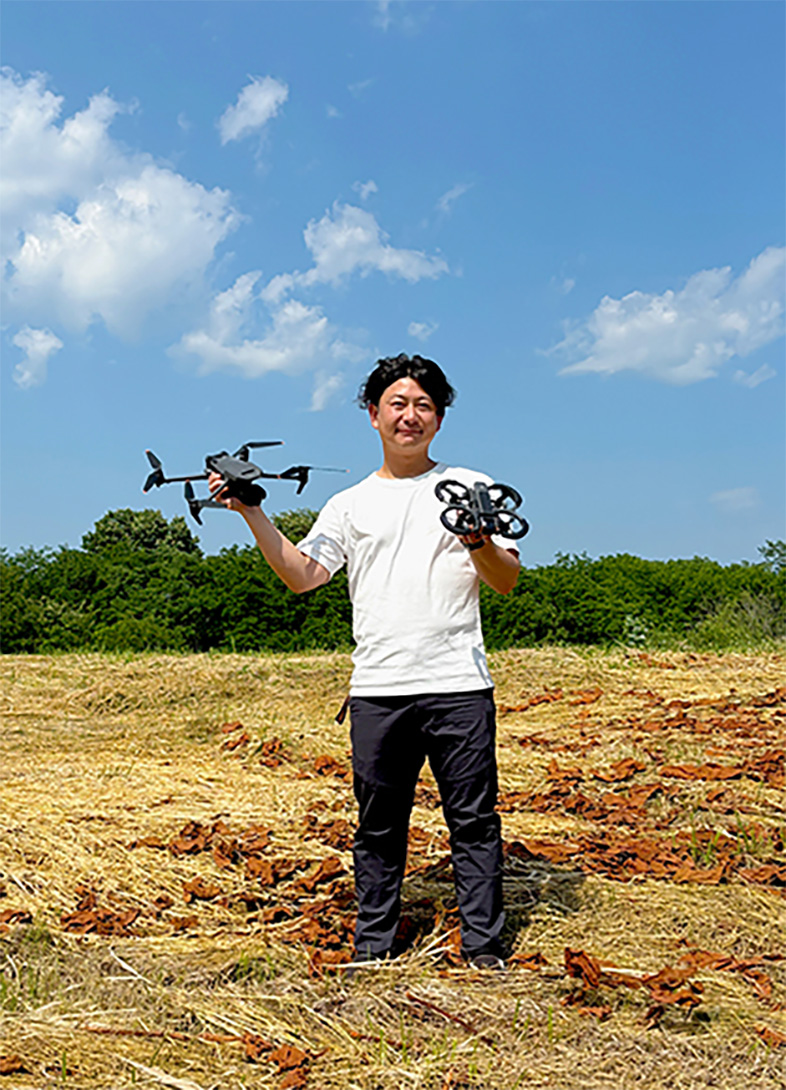 「電気工事の現場での業務にドローンを導入したいという思いからドローンパイロットの免許を取得しました。現在は個人事業主として、映像撮影や子ども向けの教育イベントの企画・運営など、多角的に事業を展開しています」
