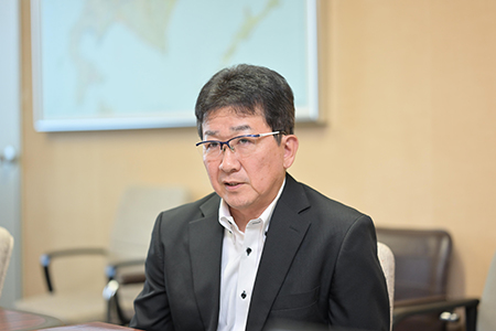 平成7年に北海道開発局へ入庁し、今年で30年のキャリアを持ち、河川分野を専門としてきた財津氏は、道内の治水事業に主に従事してきましたが、九州・武雄河川事務所勤務時代に豪雨で川が越水し、災害対応に奔走した経験が今も記憶に残ると言います。現在は都市住宅課長として、道内自治体のまちづくりや住まいづくりの支援に携わっています。